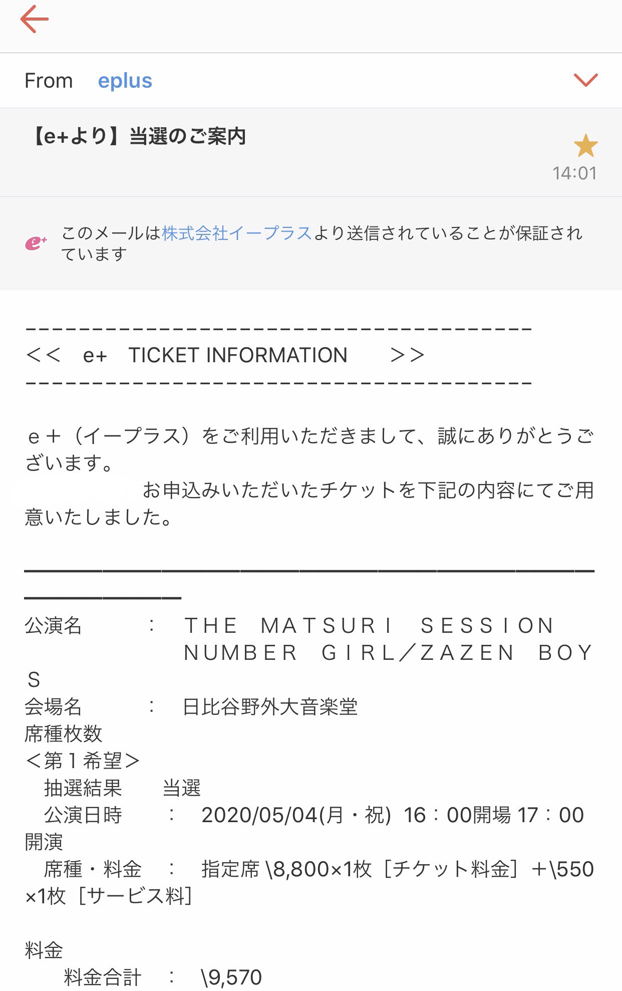 ドミー ナンバガ ザゼンの抽選結果メールが今イープラスから届いたけど 当落結果のメールの仕様がいつのまにか変わってる メール開かなくても件名で当選か落選か分かる様になってる